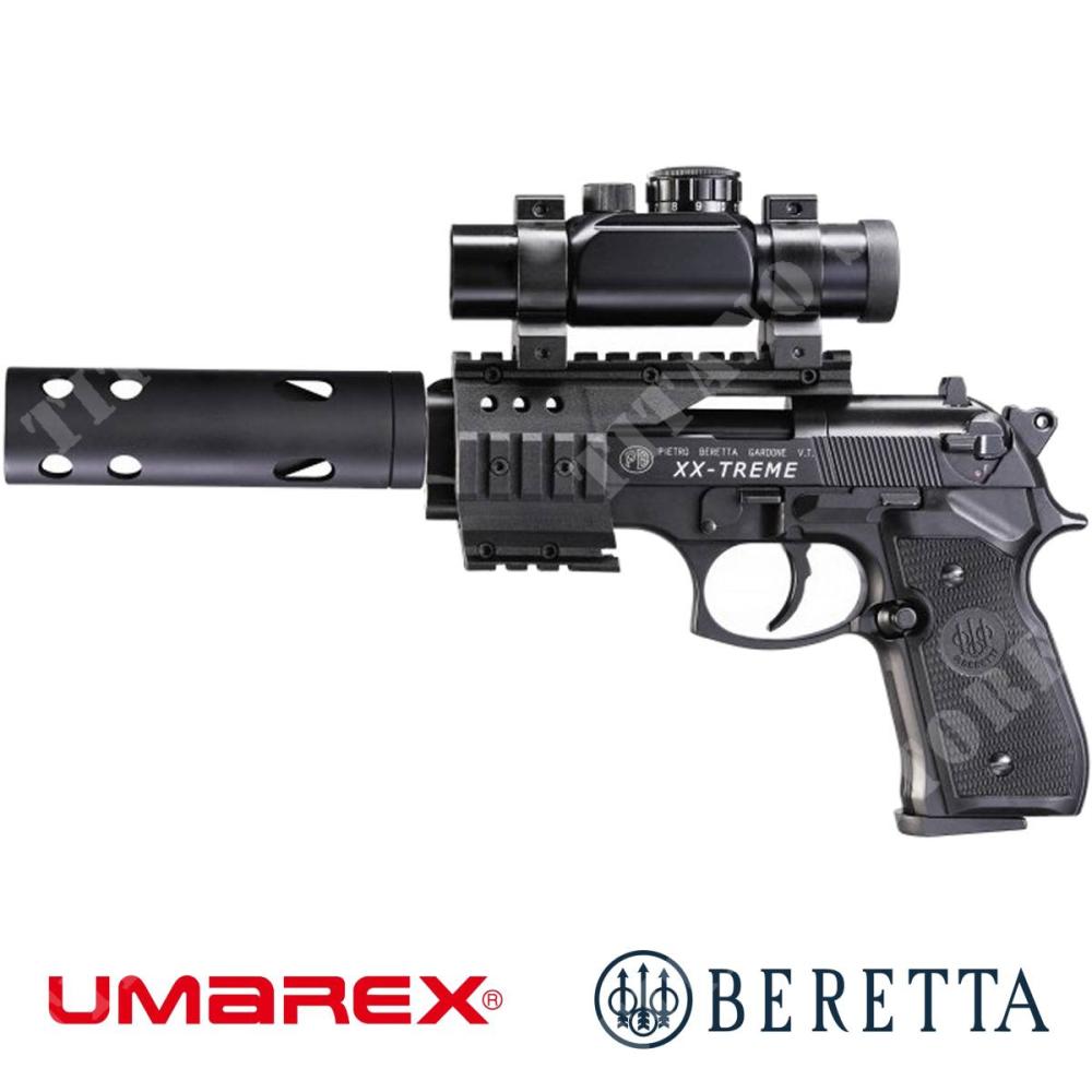The Umarex Beretta M92 FS XX-Treme is a full-metal CO₂-powered air pistol in 4.5 mm/.177 caliber, featuring an 8-shot rotary magazine, Picatinny quad-rail, compensator, and red-dot sight for maximum precision and tactical performance.