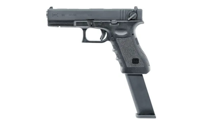 The Umarex Glock 18C (2.6419X) is an officially licensed 6 mm gas-powered airsoft pistol with realistic blowback action, selectable semi-auto and full-auto firing modes, and a 50-round hi-cap magazine — ideal for dynamic airsoft skirmishes and tactical play.