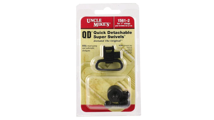 The Uncle Mike’s is a quick-detach sling swivel set designed to provide 1-inch sling mounting points on most pump-action and semi-automatic shotguns. It includes a pair of steel quick-detach (QD) swivels along with the necessary mounting hardware to secure your sling so you can comfortably carry your firearm in the field or on the range.