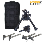 This new configuration enhances all the things that make a Versa-Pod great. Tighter tolerances mean less movement resulting in greater accuracy. Our patented tool-less friction controls allow the bipod to be precisely positioned on target and locked in place on pre-load. (slight forward pressure) The knobs can also be adjusted to allow the slightest movement for following moving targets or precise target acquisition downrange. The down pressure of the powerful spring powered legs allow elevation adjustments to be made with the weight of the rifle. Quick and easy to deploy, the Versa-pod Battlepack LITE is the perfect bipod kit for all your shooting needs.