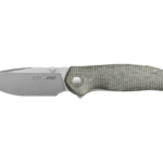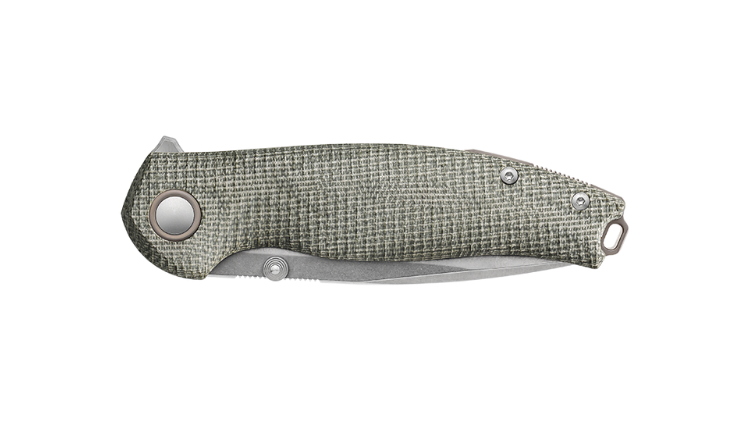 Linerlock folding knife. 4mm MagnaCut steel blade with stonewashed finish. Green canvan micarta handle and titanium clip. Titanium backspacer with lanyard hole.