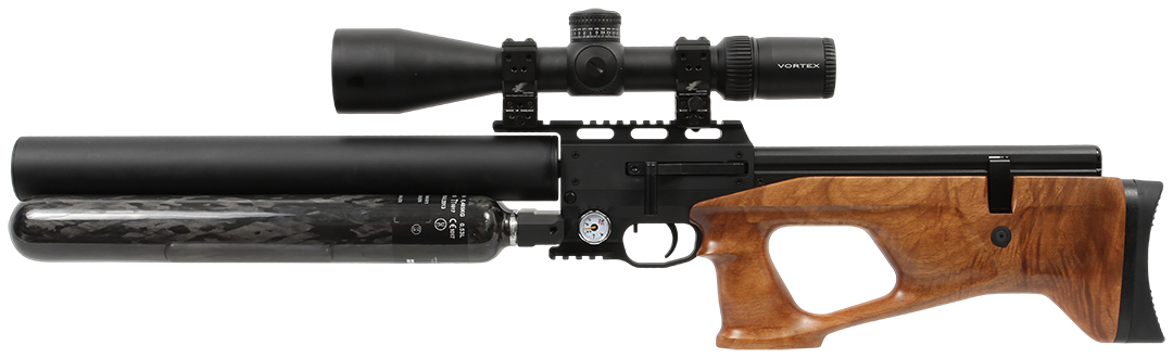 The VULCAN URAGAN KING WS (Wood Stock) is a precision air rifle designed for smooth handling and consistent performance. Chambered in 5.5 mm (.22) caliber and limited to 7.5 Joules, it is ideal for recreational and target shooting where regulated power limits apply.