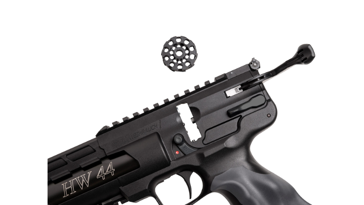 Pre-charged air pistol from Weihrauch: excellent accuracy, vibration free shot release, fast and easy repeating.