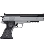Die HW 45 Silver Star – One of the most powerful air pistols on the market • its modern and compact design relates to one of the famous service pistols in the world • you can choose between two velocities without pumping etc. • precision adjustable two stage trigger with manual safety • micrometer rear sight adjustable for windage and elevation with fiber-optic • Parallel prism rail (11 mm) for scope mounting with the option of using a Picatinny rail (included) – additional Picatinny rail under the barrel for further mounting options • “Stainless-Look” finish (Duo Tone) as model HW 45 Silver Star • with black-grey laminated grip.