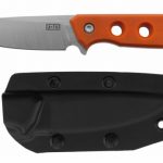 The handle linings are made of durable G10 composite in black or orange. The covers adhere to the knife in a full-tang construction, screwed on stainless screws. The material of the covers is resistant to moisture, temperature changes, most solvents and acids and, most importantly, is characterized by high resistance to mechanical damage.Kydex sheath – can be mounted vertically and horizontally thanks to our stainless steel handle. The holes have been spaced in such a way that it is possible to mount a “Tek-Lok” handle